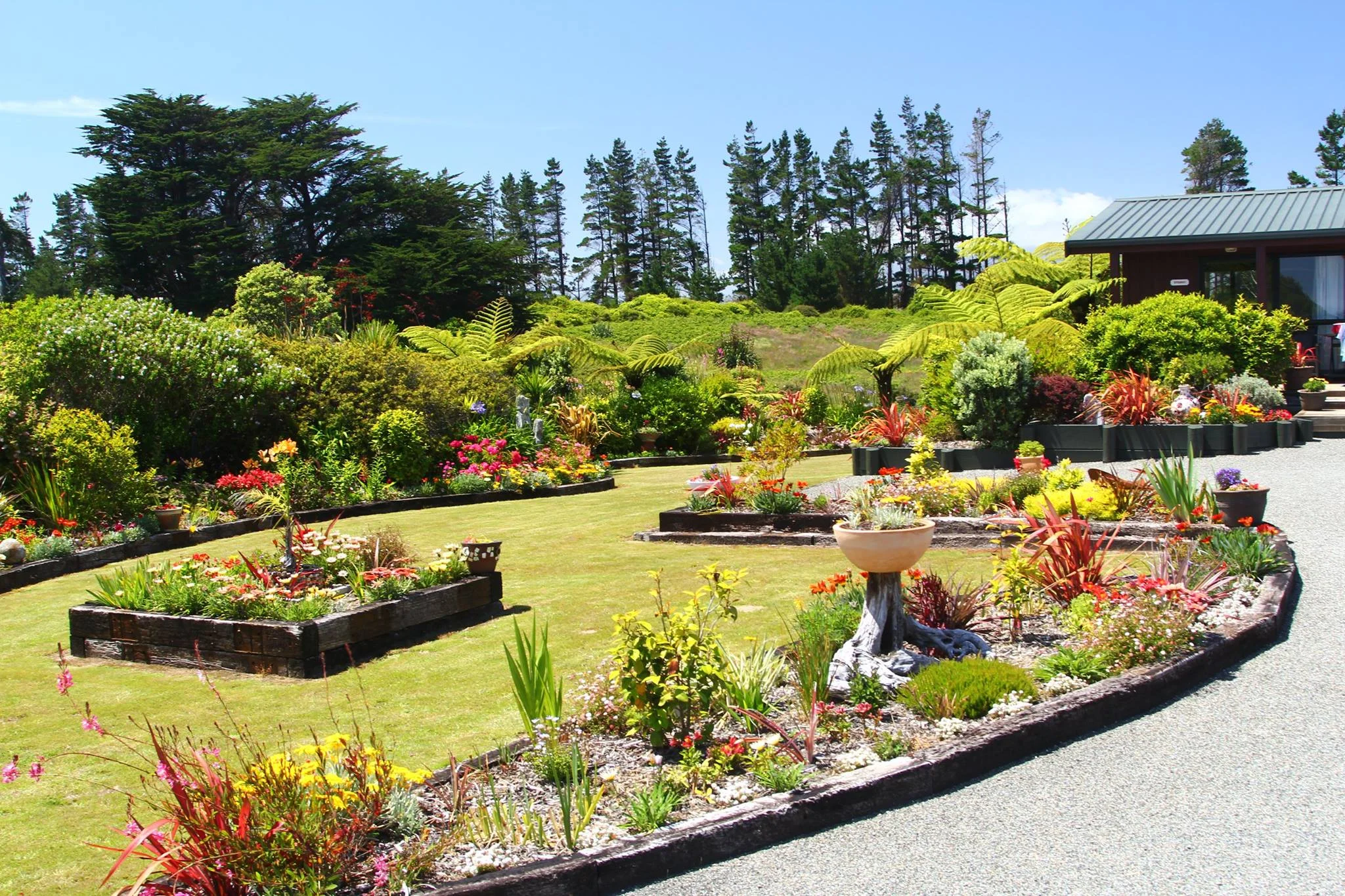 Perfectly manicured gardens at our Airbnb house in Cape Foulwind, New Zealand.